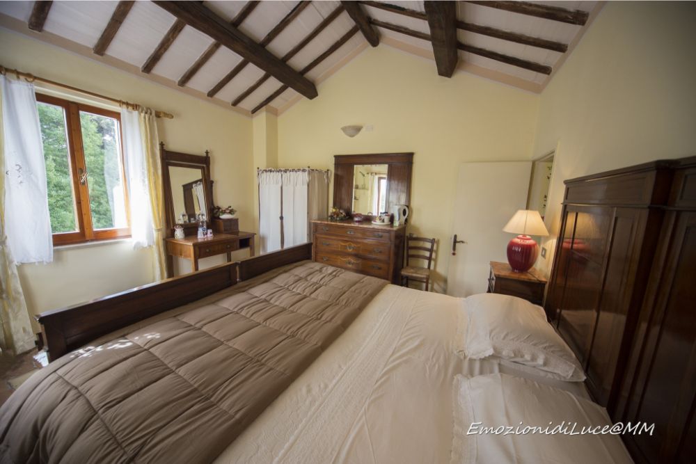 One Romantic with antique furniture and beams; the other is lively with its blue and yellow colours characterised by sunflowers painted on the walls.